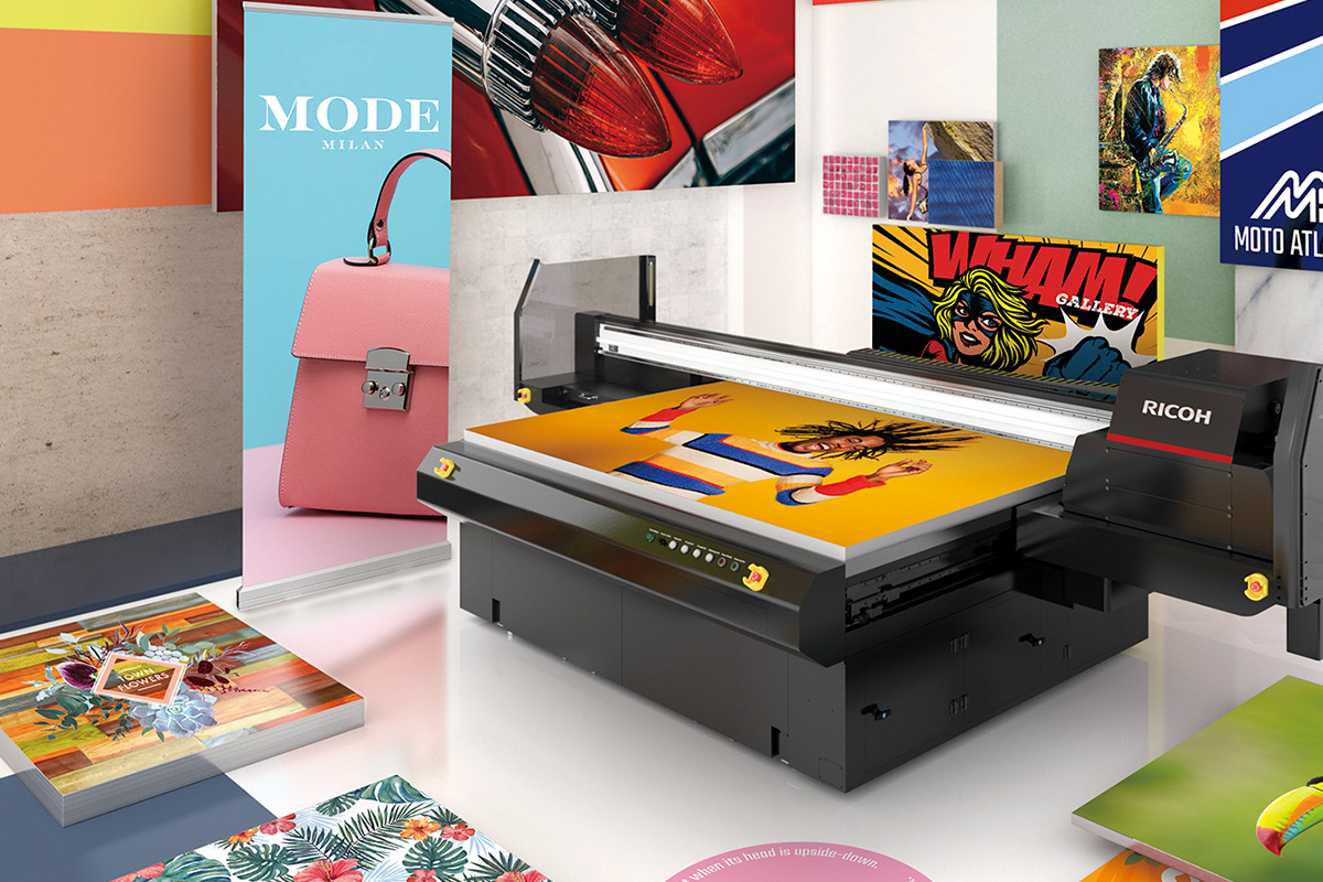 Yeni Ricoh Pro T7210 UV flatbed mükemmel yapışma özelliklerine sahip esnek mürekkep kullanmayı gerektiren pek çok farklı malzeme üzerine baskı yapmak için ideal bir platformdur.
